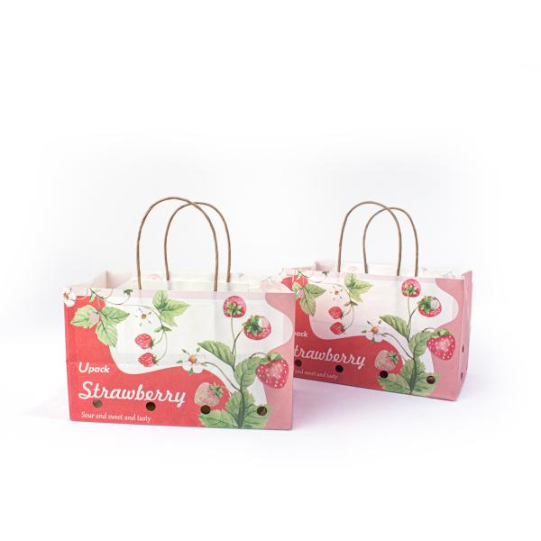 Wet Strength Paper Handle Bags , Compostable Paper Bag For Fruits With Air Hole Images |